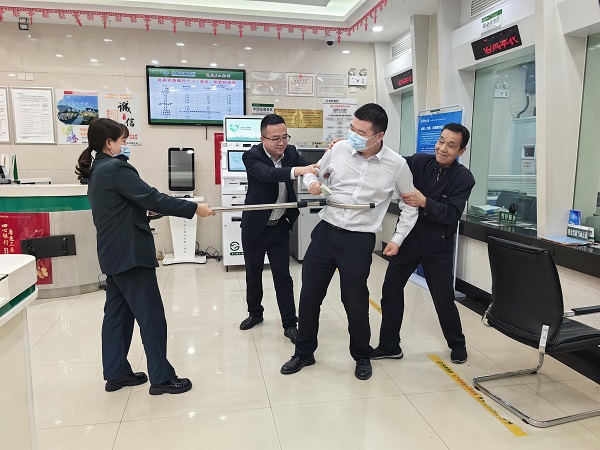 为进一步提高员工风险防范意识和处置各种突发事件技巧和能力,4月22日,城关支行组织员工开展了预抢劫预案演练。