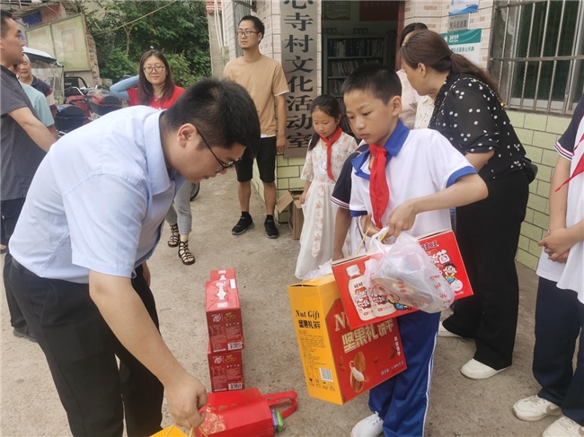活动当天,中国邮政储蓄银行西充县支行与县中医院的工作人员早早来到圭心寺村。在村文化活动室前,工作人员们将精心准备的书包、文具、坚果礼盒、旺旺食品等慰问品整齐摆放好。孩子们穿着整洁的校服,系着鲜艳的红领巾,眼神中充满了期待。