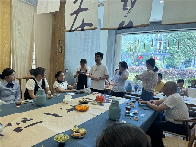 活动现场布置雅致温馨,茶艺师专业演示传统茶道,客户在品鉴蒙顶山特色茶品的同时,与银行员工展开零距离交流。