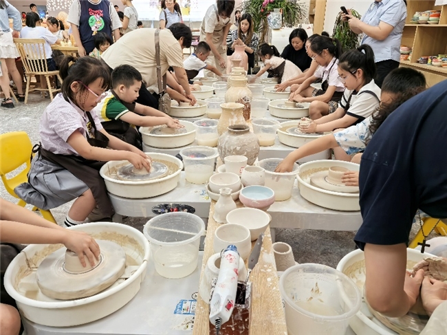活动特别设置了非遗文化体验区,家长与孩子携手参与陶艺制作、特色香薰DIY、微景观创作及陶瓷手链编织等项目。在陶艺塑造中,孩子们揉捏陶土,创作出充满想象力的作品;香薰制作中,亲子协作调配香料,打造专属香气;微景观造景中,一个个绿意盎然的“迷你生态”在指尖诞生;而陶瓷手链编织则让孩子们感受到传统工艺的精妙。通过亲手实践,孩子们不仅体验到非遗文化的魅力,更在亲子互动中领悟到耐心、协作与传承的意义。