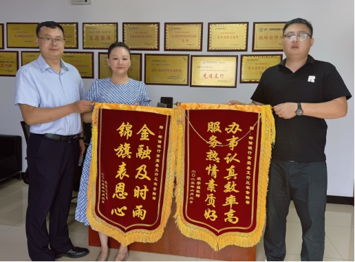 “金融及时雨 锦旗表恩心”“办事认真效率高 服务热情素质好”——几行烫金的大字饱含着浓浓的感激之情。6月3日,金堂羊肚菌贸易客户将两面锦旗送到邮储银行成都金堂支行,感谢支行团队为他们提供的高效便捷金融服务。