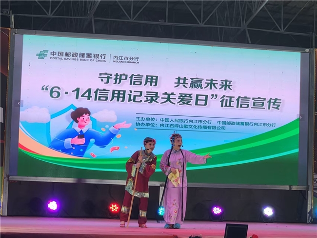 为深入贯彻落实党的二十大精神,传承弘扬中华优秀传统文化,提高社会公众信用意识和维权意识,推动社会信用体系建设,中国邮政储蓄银行内江市分行于6月14日晚,精心策划并成功举办了一场以非遗文化节目为载体的征信知识宣传活动。此次活动将内江市威远县石坪山歌非遗文化的独特魅力与征信知识的普及宣传有机融合,为公众带来了一场别开生面的文化与知识盛宴,取得了良好的社会效果。