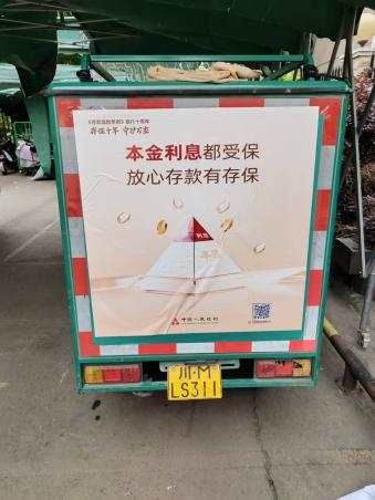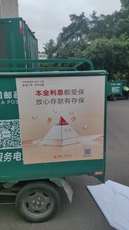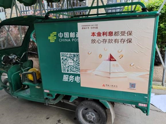 今年是我国《存款保险条例》施行十周年,为夯实宣传效果,拓展宣传辐射范围,邮储银行资阳市分行携手邮政公司资阳市公司持续开展投递小邮车“存保”宣传。