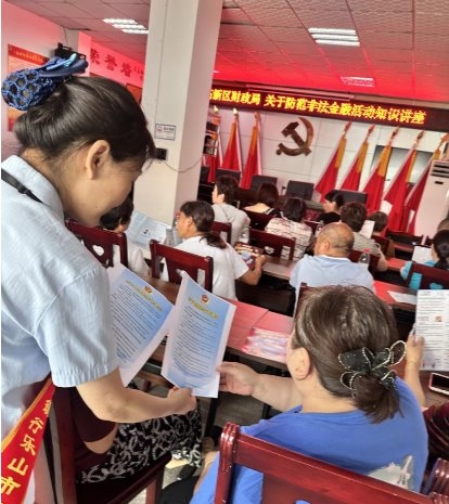 6月10日上午,乐山高新区财政局与邮储银行乐山市安谷镇支行走进乐山市安谷镇民和社区,组织开展“守住钱袋子o护好幸福家”为主题的防范非法金融活动知识讲座。
