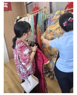活动期间,支行特邀专业造型团队,为客户提供定制旗袍造型服务。从古典发饰搭配、精致妆容设计,到十余款特色旗袍的试穿与风格塑造,每一个环节都彰显细致匠心。同时,网点工作人员全程提供一对一专属服务,在造型设计、场景拍摄及照片筛选等环节给予悉心协助,凭借“管家式” 服务收获客户高度赞誉。此外,活动现场还设置了财富管理微沙龙,结合客户个性化需求定制专业资产配置方案,推动专业金融服务与文化体验深度融合。