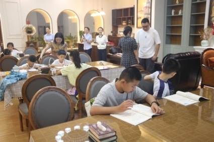 如今,邮储银行泸州市分行“邮爱时光”咖啡吧被巧妙布置为托管班的温馨“营地”。在这里,两名富有爱心和经验的老师将悉心陪伴孩子们度过暑假。托管班课程设计兼顾学习与趣味:一方面提供专注的作业辅导时间,另一方面精心安排了丰富多彩的文体活动——棋类对弈、创意绘画、益智游戏、经典电影赏析、自由阅读时光以及趣味互动环节,让孩子们在轻松氛围中收获知识、培养兴趣、发展能力。