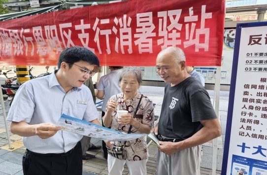 驿站不仅是歇脚点,更是移动“金融课堂”。凉棚下,几位老人正聚精会神地聆听银行工作人员讲解防范金融诈骗知识。“陌生电话让您先交钱才能领奖,千万别信!”工作人员用通俗易懂的语言,结合真实案例,向老人们普及“养老钱保卫战”的要点,并现场手把手指导老人们使用手机查询养老金到账情况。62岁的王大爷表示:“以前担心按错手机,现在有他们耐心教,心里踏实多了!”作为适老化支付服务示范网点,驿站的服务充分体现了适老关怀:讲解避免专业术语、操作流程配有图示、宣传手册字体特意放大,让老年客户听得懂、学得会、用得好。不少老人反映,驿站既能歇凉解暑,又能学到实用的金融知识,感觉特别贴心。