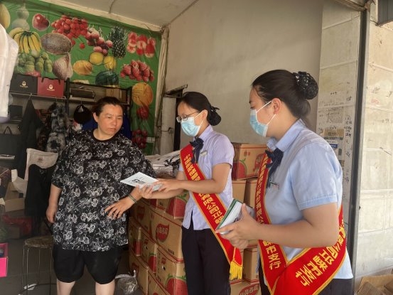 7月10日上午,邮储银行成都邛崃市文南路支行在辖内水果批发市场及周边商户区域开展“防范电信网络诈骗·守护钱袋子”主题宣传活动。支行工作人员身披红绶带,穿梭于摊位之间,以案说法、以案示警,把反诈知识送到商户“摊位口”。