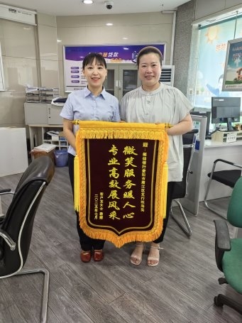 2025年7月16日,炽热的阳光炙烤着大地,气温计指针直指40度。这时,一位客户汗流浃背地走进邮储银行资阳市雁江区新城路支行大厅,将一面红艳艳承载着诚挚谢意的锦旗,亲手赠予客户经理陈海英手中,脸上洋溢着感激的笑容。锦旗上绣着的“微笑服务暖人心,专业高效展风采”金色大字格外醒目。当客户经理接过这面饱含温情的锦旗时,我们深切感受到客户对邮储银行资阳市分行服务的认可与支持。这面锦旗背后,是该行通过联动营销、高效响应,仅用一小时便为公职人员龙女士解决装修资金难题的暖心故事。
