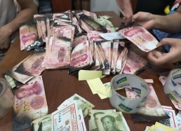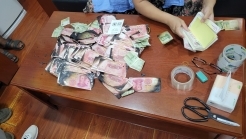 当日,一位客户携带一纸箱进入网点营业大厅。大堂引导员上前接待,经询问得知,客户家中因不明原因意外失火,导致部分现金严重损毁,预估金额约 4 万元,其中以100元券为主。部分纸币边缘已碳化,且都用透明胶带进行了粘贴;还有一部分因救火时被水淋湿,全部粘连在一起。
